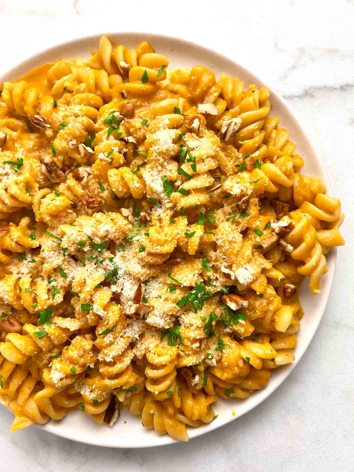 This Pumpkin Pasta is an incredible way to celebrate fall! It's creamy, saucey, and oozing with pumpkin flavor. Like many simple sauces, this one takes less time to prepare than the pasta itself. Ready in 20 minutes or less!